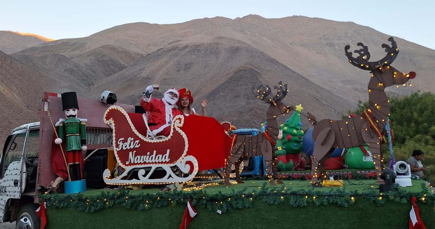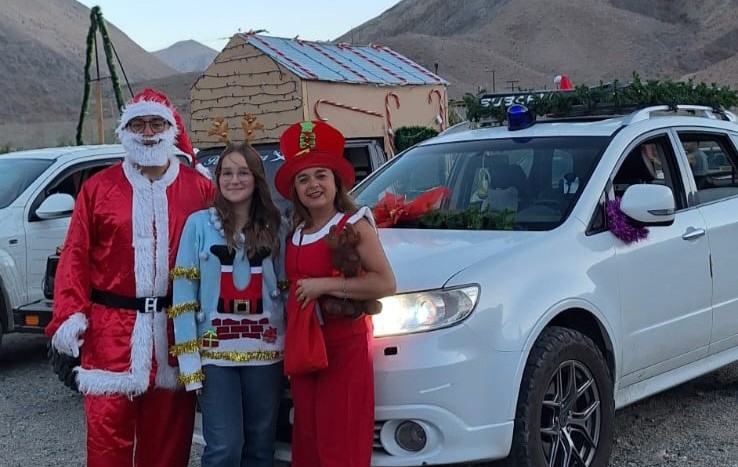 Ich wurde mit Weihnachtspulli und Rentierhörnern ausgestattet und bin mit meinem Gastbruder im geschmückten Auto mitgefahren. Mit rund elf Fahrzeugen (jedes festlich geschmückt mit Figuren und Lichterketten) sind wir während vier Stunden, eine 35 km lange Strecke durch das Tal im Schritttempo abgefahren. In jedem Weiler oder kleinem Dorf wurde die Weihnachtsmusik aufgedreht und drauflosgehupt, um die Leute auf den Umzug aufmerksam zu machen (die Musik war den Umständen entsprechend etwas komisch, aber anscheinend ist es normal, mitten in der Wüste im Sommer lauthals «Let it Snow» zu singen😂).